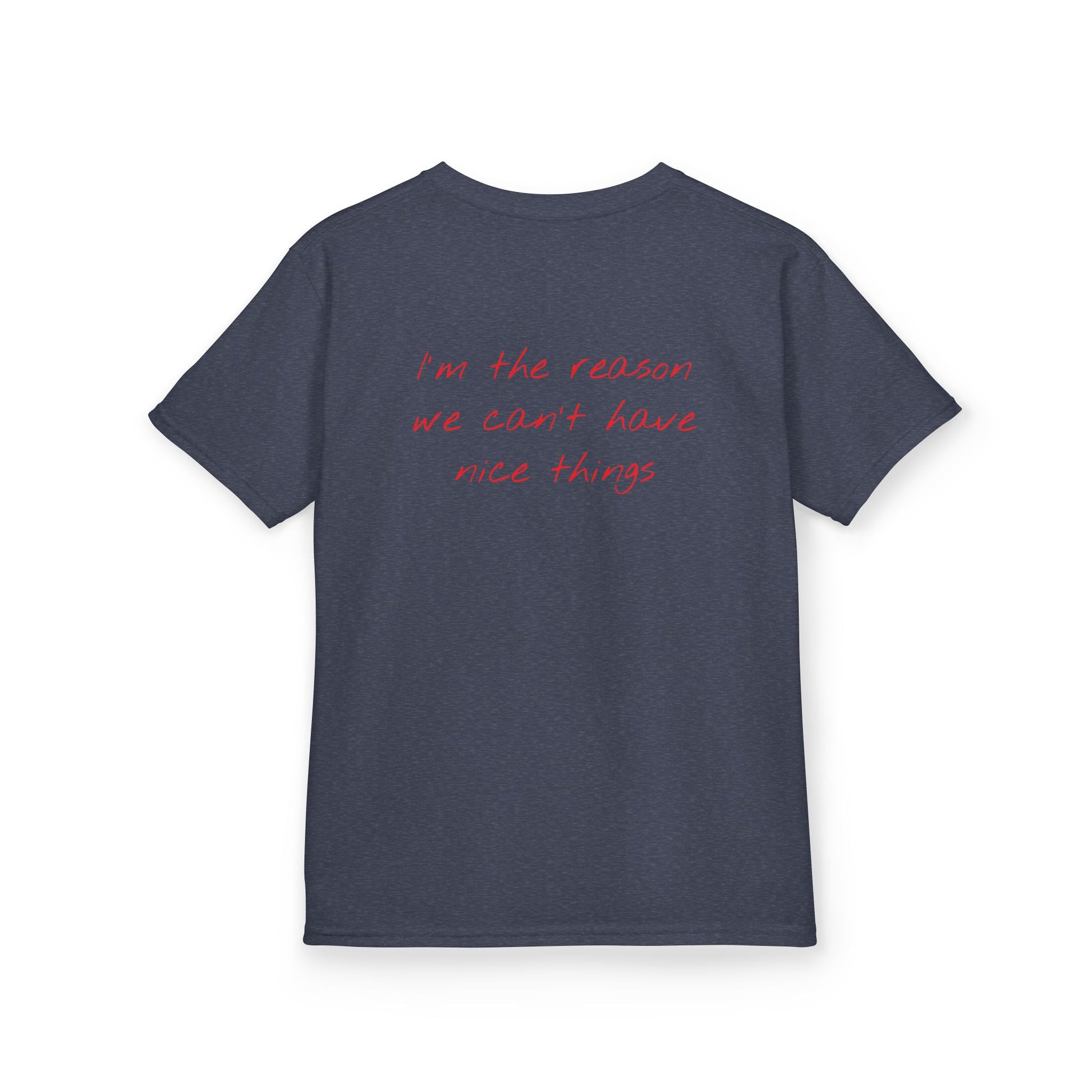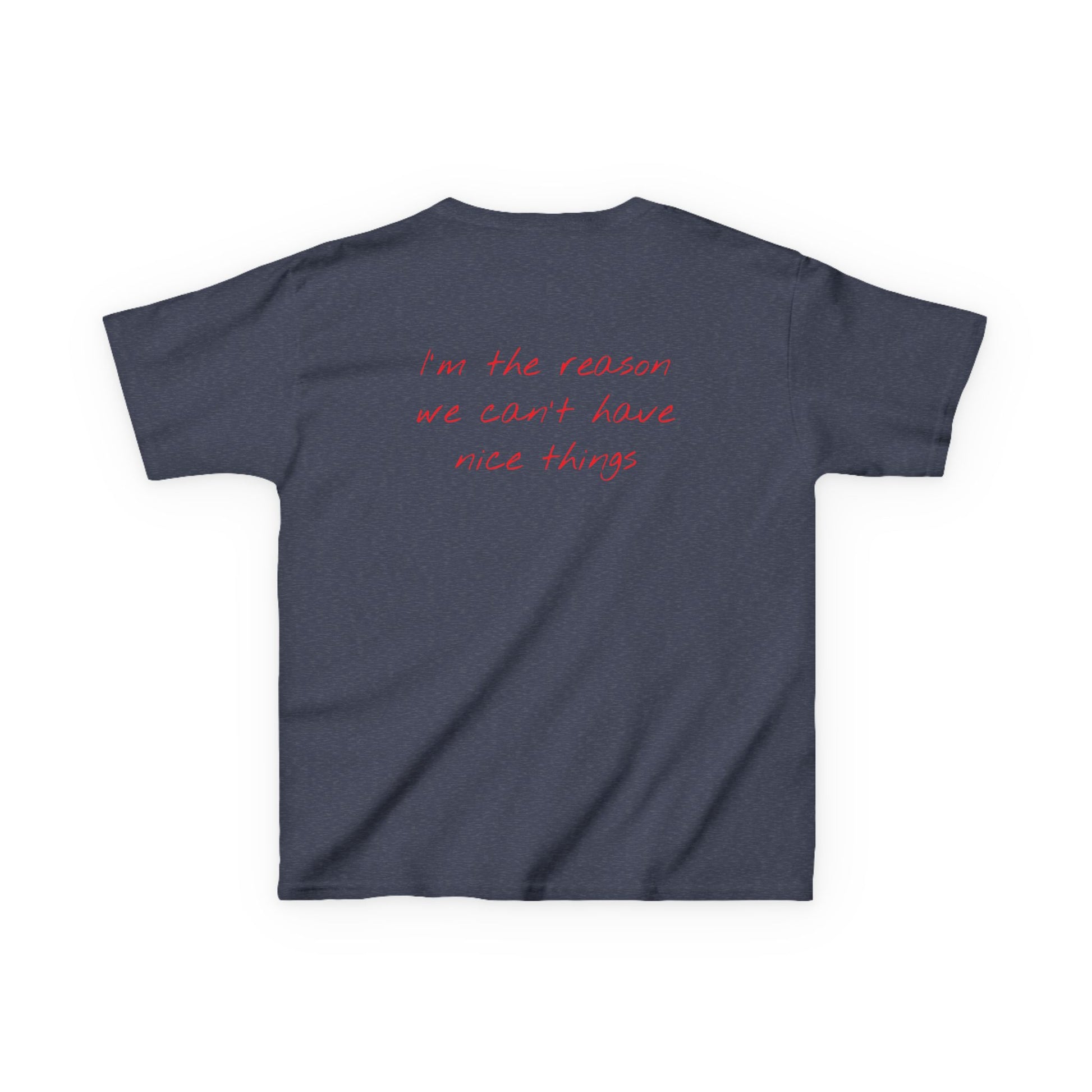 Soft, everyday kids’ tee with a warm, adventurous heart. The front shows a cozy woodland scene with friendly animals and the words “Go find yourself — Be brave. Be kind,” inviting curiosity and quiet courage. The back carries a small, handwritten-style message in muted red that reads like a secret note: gentle, reassuring, and a little mischievous. Lightweight but sturdy, this shirt sits comfortably for play, storytime, or family outings. It layers easily under jackets or over long sleeves and feels familiar right away — the kind of shirt that becomes a favorite because it matches a child’s spirit: curious, brave, and kind.