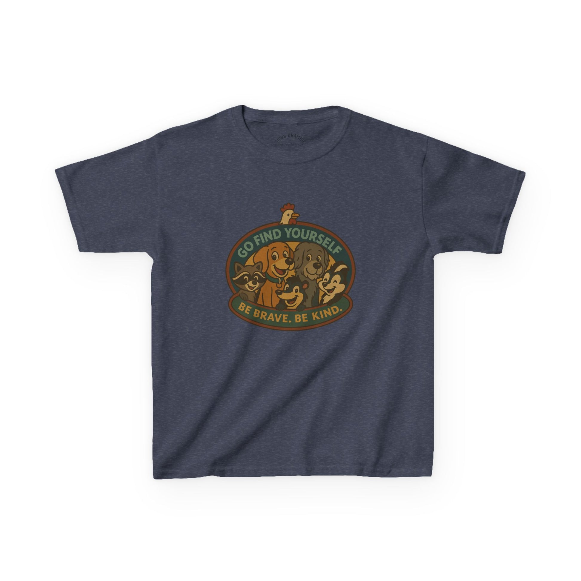 Kids Tee — 'Go Find Yourself' Adventure Graphic (Be Brave, Be Kind)