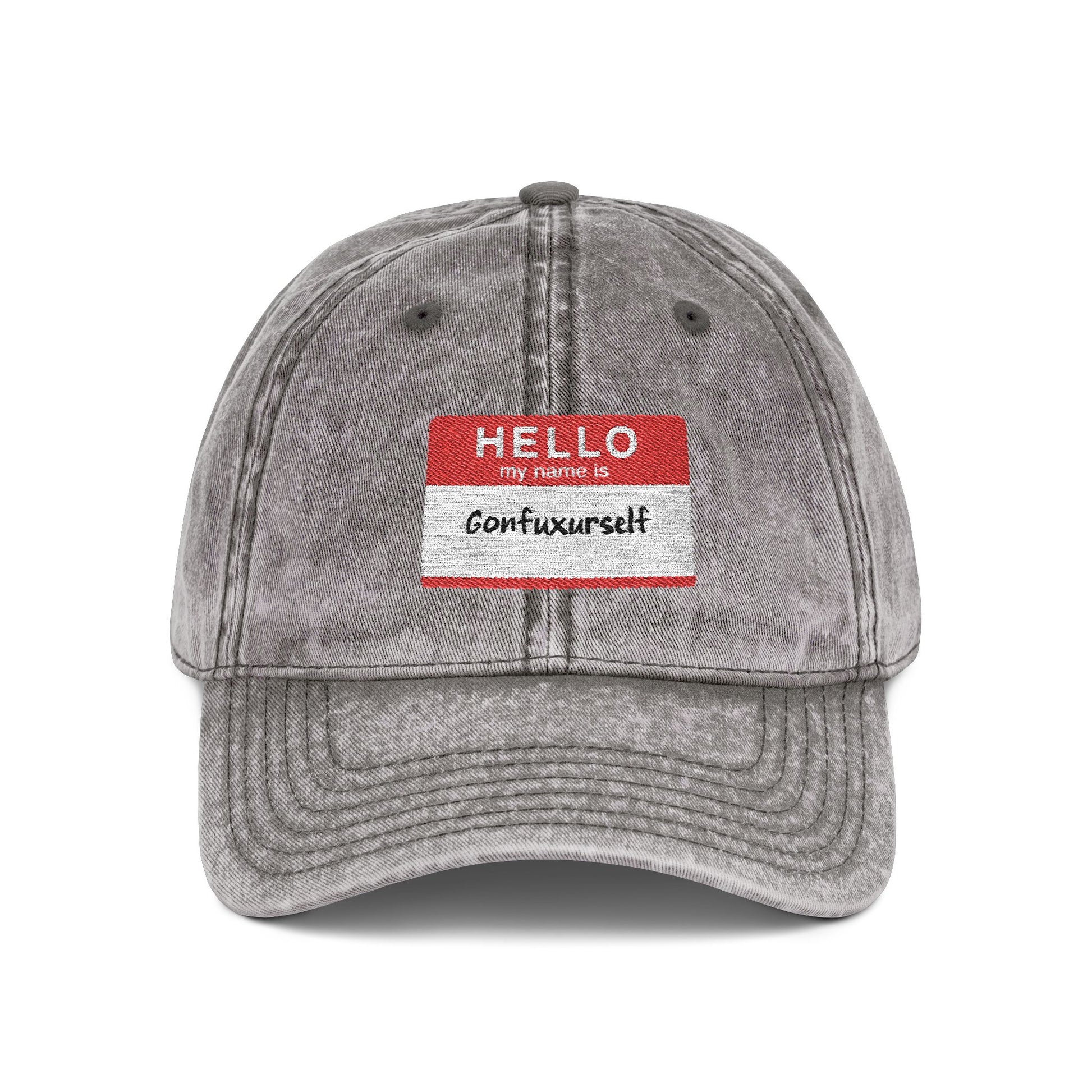 Vintage Embroidered 'Hello, My Name is' Distressed Cap
